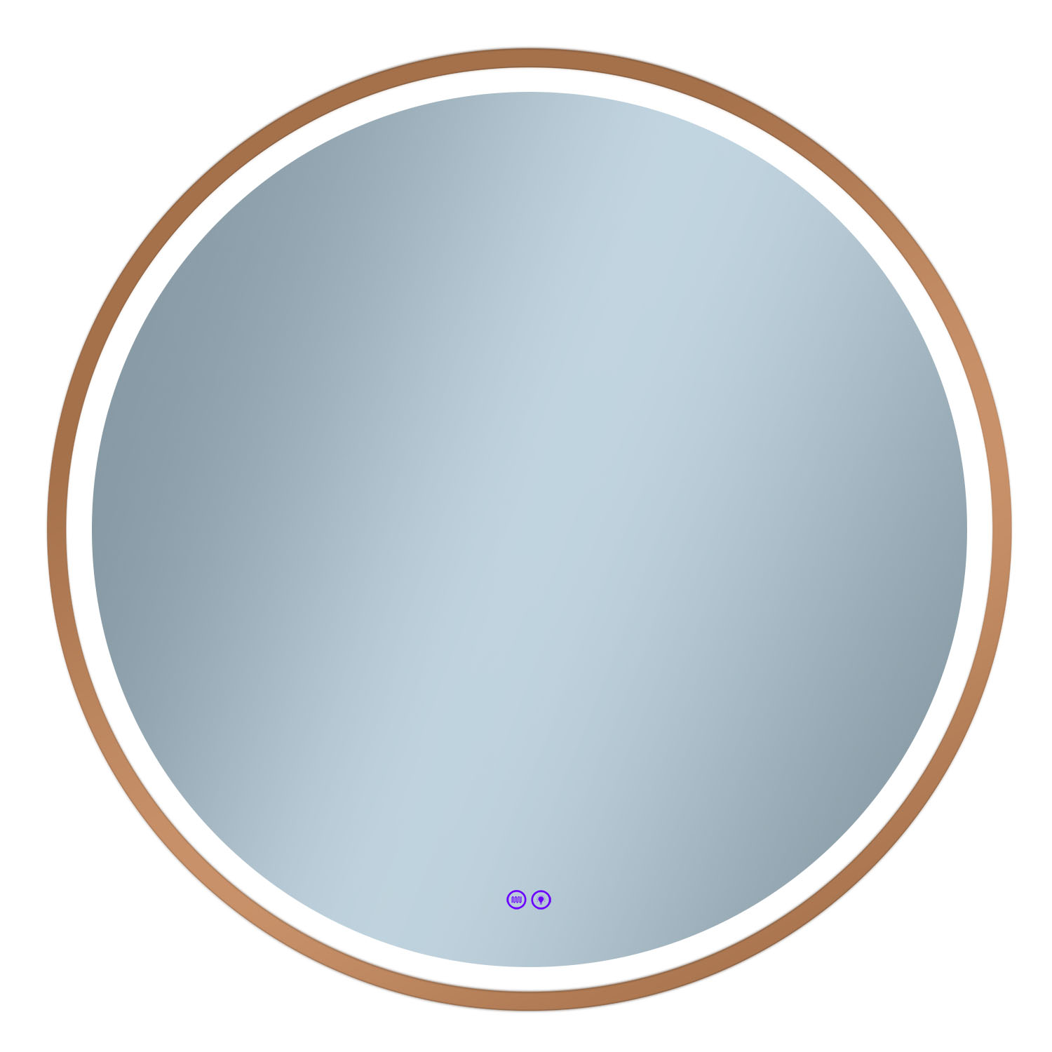aluminiowa rama w kolorze miedzi, oświetlenie Led, mata grzewcza, dwa włączniki dotykowe