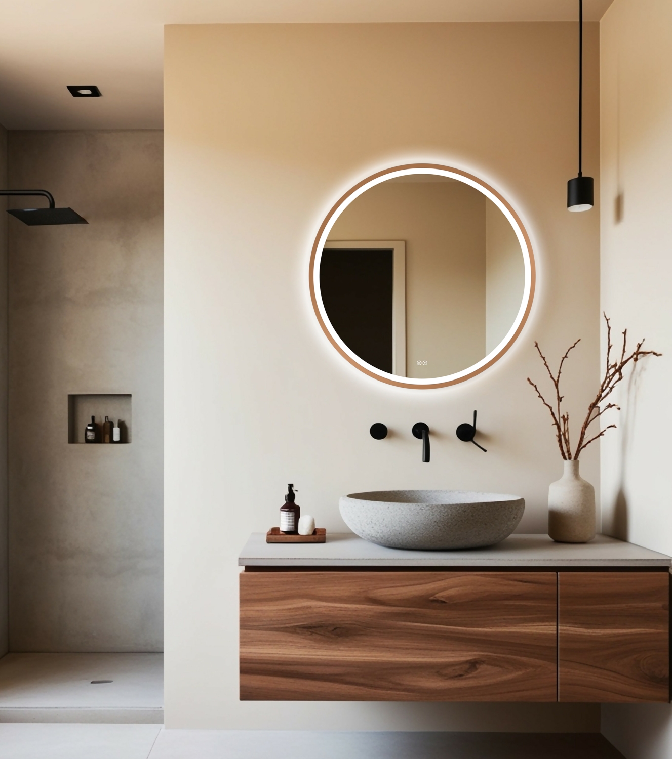 Lustro Orion Red Gold to wyjątkowy element wyposażenia, który łączy nowoczesny design z funkcjonalnością. Jego elegancka, aluminiowa rama w kolorze miedzi nadaje wnętrzu niepowtarzalny charakter, a subtelne podświetlenie LED, przenikające przez piaskowanie, tworzy efektowną i przyjemną atmosferę. Dodatkowo, wbudowana mata grzewcza skutecznie zapobiega parowaniu lustra, zapewniając zawsze doskonałą widoczność. Idealne do nowoczesnych łazienek, gdzie estetyka spotyka się z innowacyjnymi rozwiązaniami. Lustro Orion Red Gold to połączenie stylu, komfortu i nowoczesnej technologii w jednym.