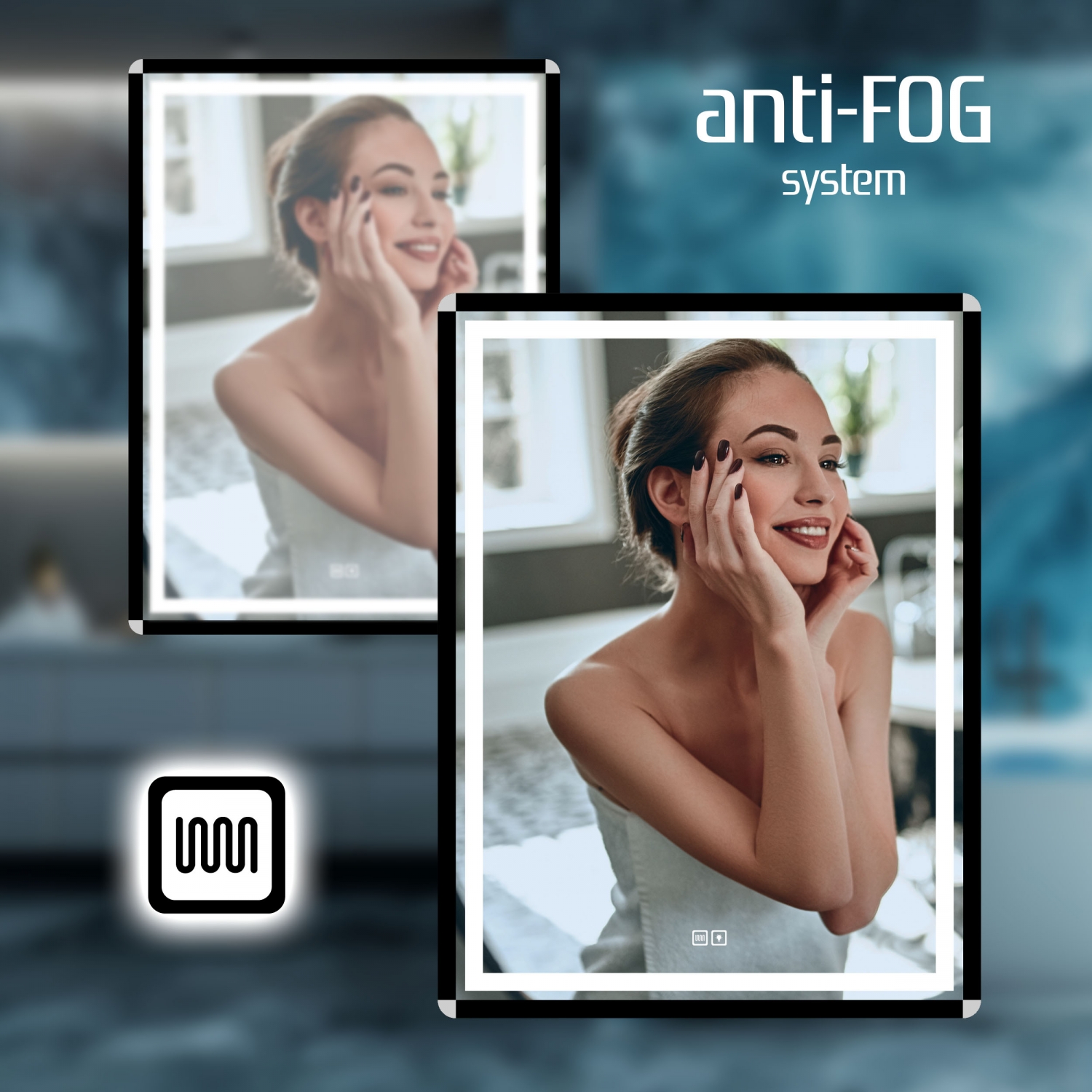Lustro Duo Silver to nowoczesne połączenie elegancji i funkcjonalności - czarna rama z delikatnie zaokrąglonymi narożnikami w kolorze srebrnym nadaje mu stylowy charakter, a dekoracyjne piaskowanie wokół tafli subtelnie podkreśla jego wyjątkowy design. Zastosowane oświetlenie LED najnowszej generacji zapewnia jasne, naturalne światło, idealne do codziennej pielęgnacji, a wbudowana mata grzewcza skutecznie zapobiega parowaniu, gwarantując zawsze czysty obraz. To doskonały wybór do nowoczesnej, wymagającej łazienki -styl, technologia i komfort w jednym.
